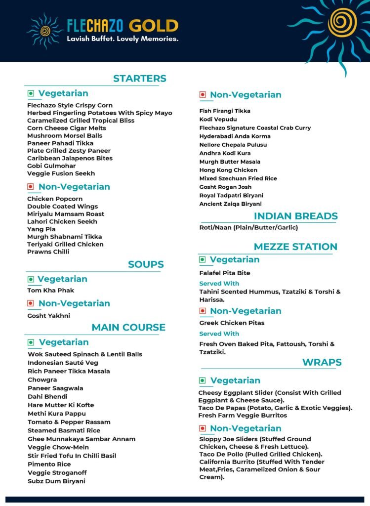 Step into Flechazo GOLD, Hitech City where luxury meets global culinary celebration. Located in Hyderabad’s buzzing tech and business district, this flagship destination reimagines buffet dining with a Lavish expertly crafted dishes, premium non-veg offerings, coastal delicacies, and signature dishes all served in a soothing, upscale ambience.