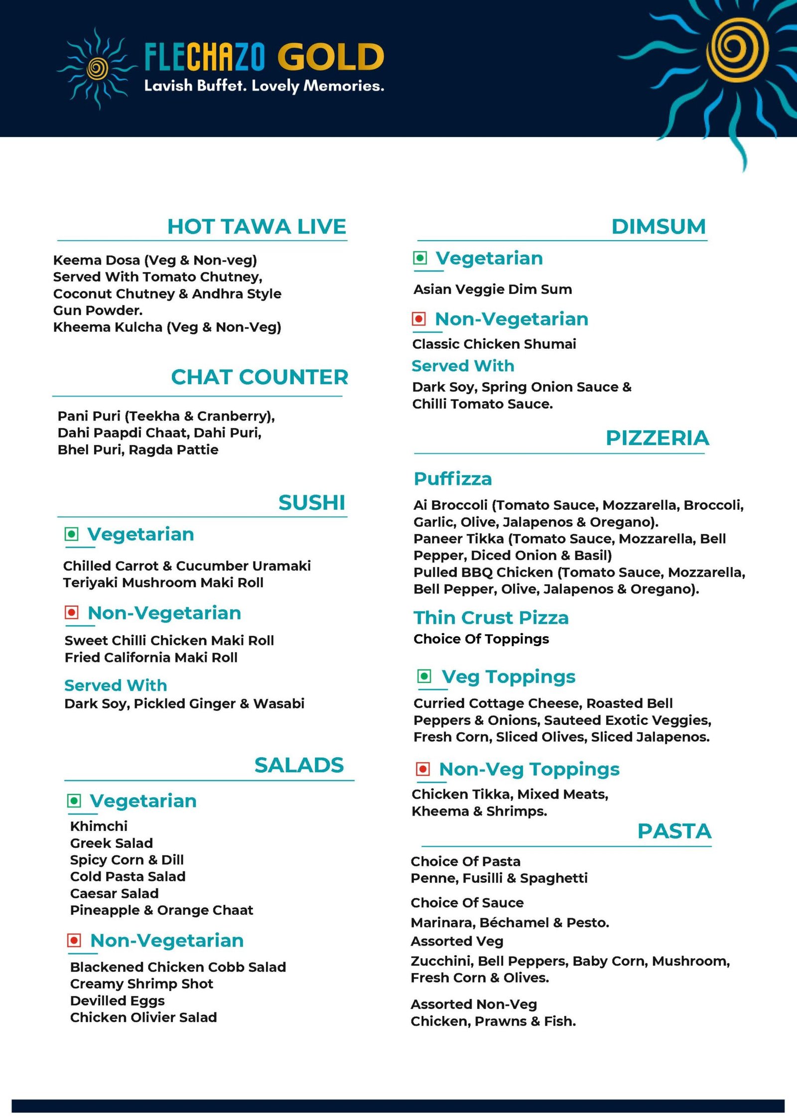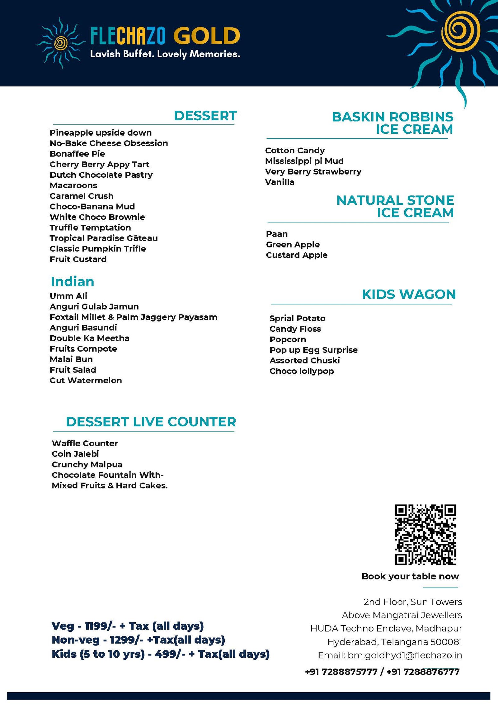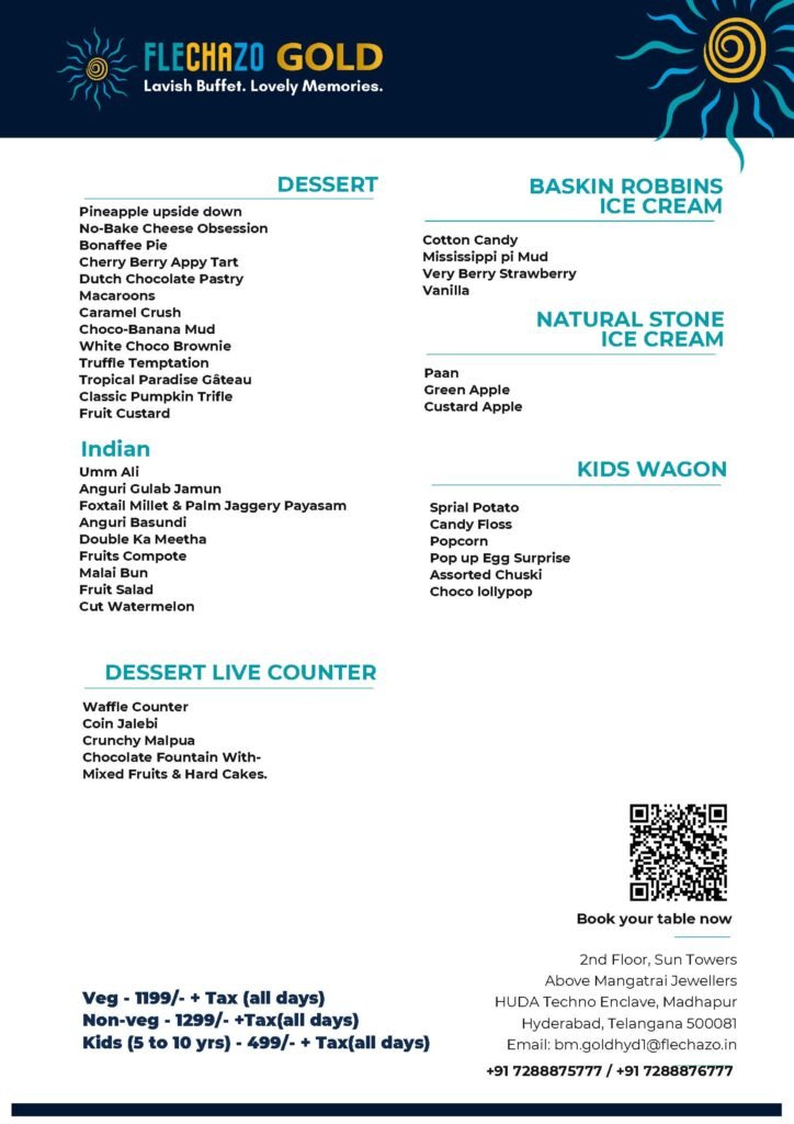 Voted ‘Best Buffet in Hyderabad – Swiggy Dineout Restaurant Awards 2025’, Flechazo GOLD is more than a buffet — it’s a benchmark in quality, innovation, and personalized service. Each visit is designed to deliver celebration, joy, and indulgence.
